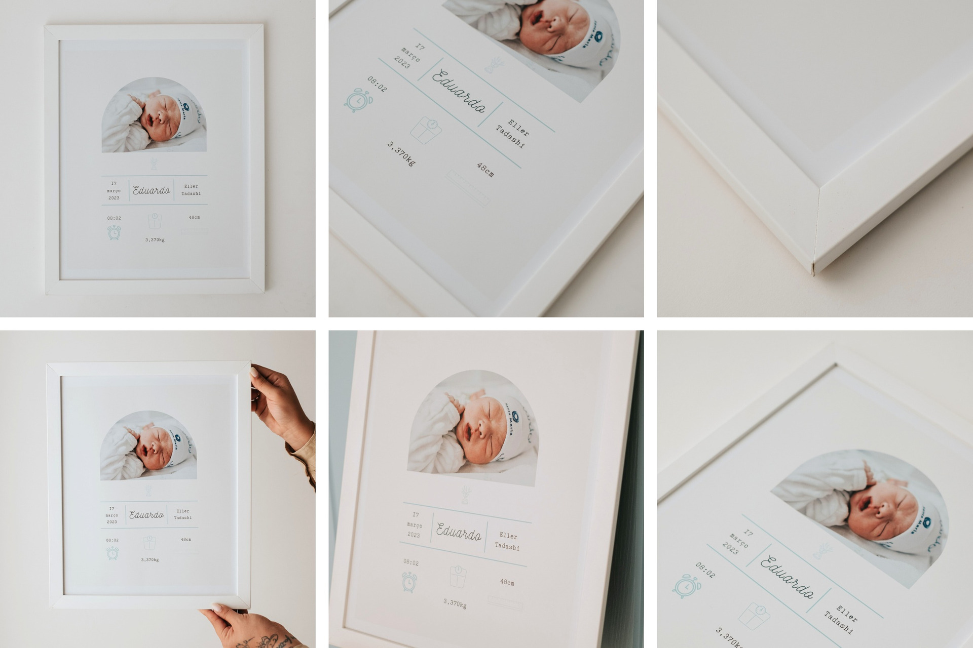 - Nome do bebê, informações do nascimento etc